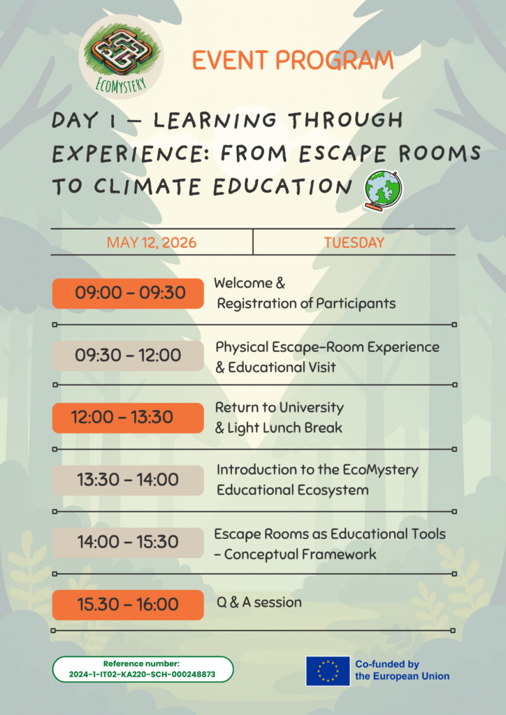 Educators and partners from across Europe will explore how game‑based learning, escape‑room methods, and climate education can be combined to create engaging learning experiences.